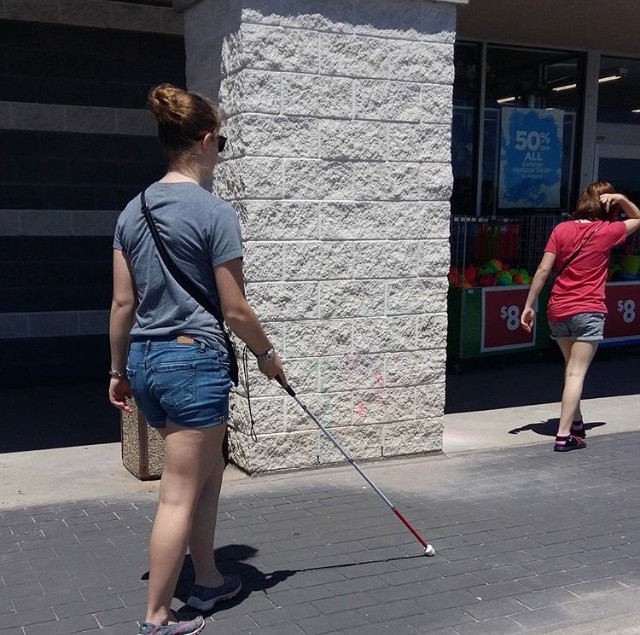 Ok, so! To get right to the point, I'm Emilee. I am visually impaired as well as colour blind and have light sensitivity. I use a cane outside and when I travel independently. I am a very physically active person and I encourage you to check out more of my stories on this platform, but one of my other favorite things to do is shop and here's how!